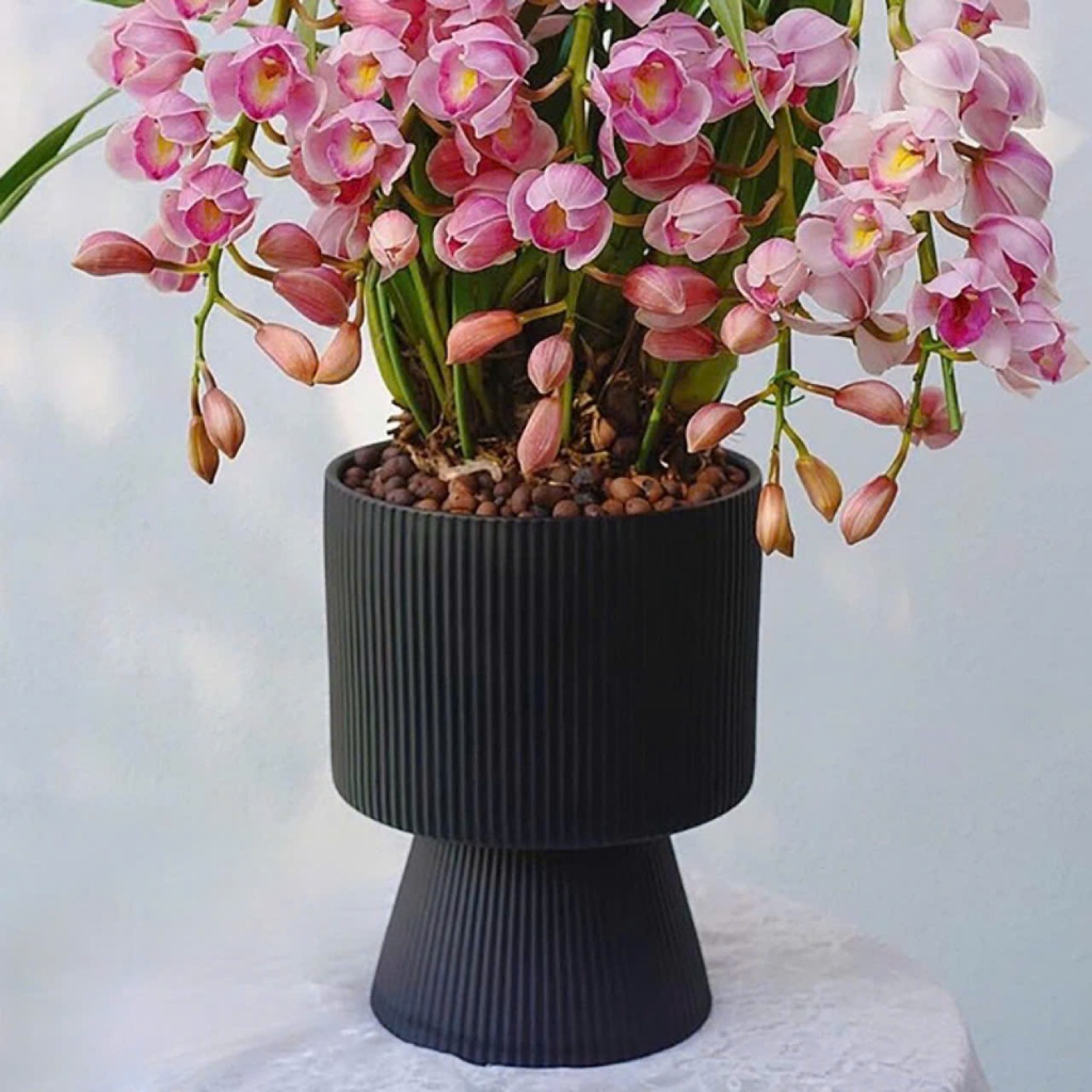 Chậu trồng cây cảnh dáng LY CAO, chậu CHÂN CAO, trồng hoa lan, cây kim ngân, kim tiền để bàn.